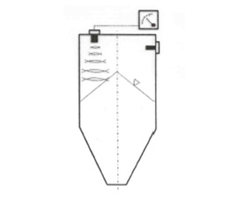 В режиме массового расхода накопленные частицы мобилизуются при выгрузке, поэтому соответствующая конусность и разгрузочное сечение бункера определяют равномерное опорожнение силоса, с равномерным понижением уровня материала и с исключением образования сводов твердая масса на выхлопе.